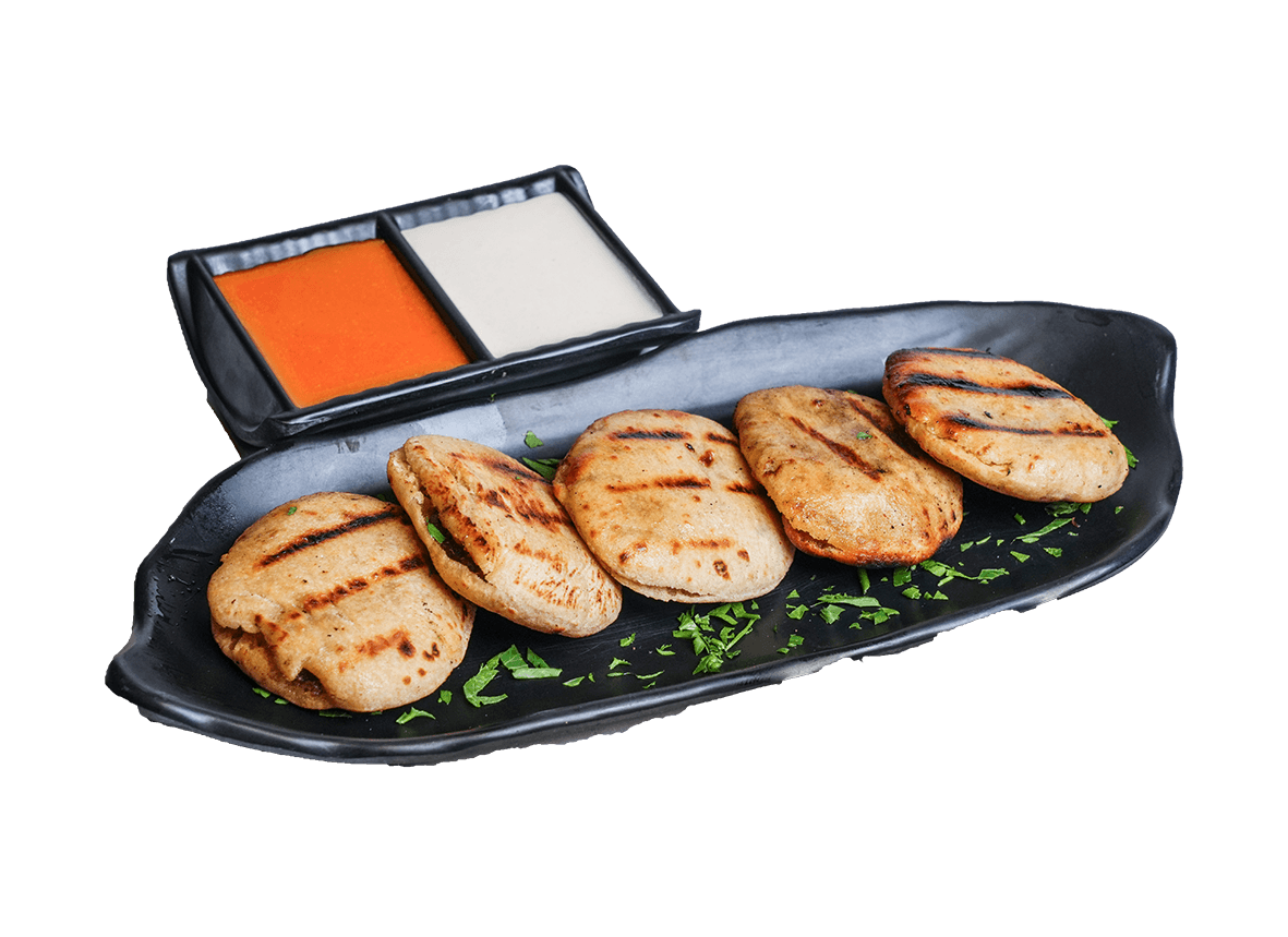 طبق دجاج متبل مشوي مع چمبا، أرز بالذرة، مخلل، سلطات متنوعة.