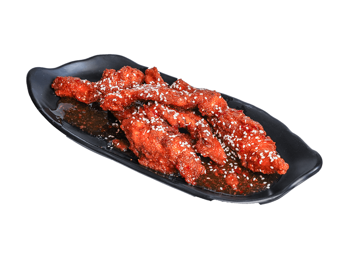 شرائح لحم دجاج معد مع بصل , چمبا وفقع , وصوصات اسيوية